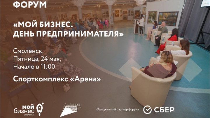 В пятницу, 24 мая, в Смоленске состоится второй день форума «Мой бизнес. День предпринимателя». Масштабное мероприятие, посвященное Дню российского предпринимательства, пройдет в спорткомплексе «Арена».