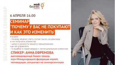 Место проведения: Центр «Мой бизнес», г. Смоленск, ул. Тенишевой, д.15, 8 этаж, учебный класс